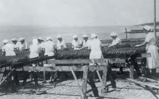Sušenje ribe ispred tvornice Sloboda, Sućuraj. Izvor: Od barake do fabrike