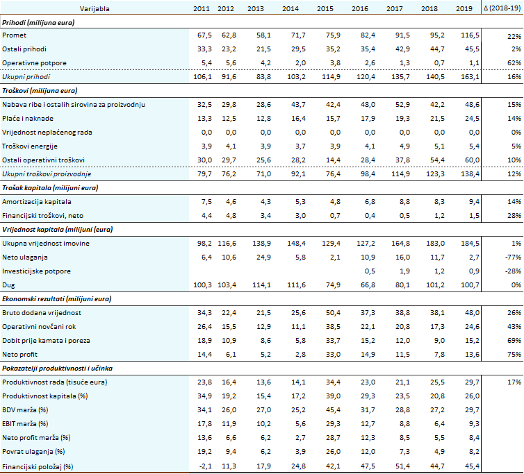 Detaljniju ekonomsku analizu pročitajte u priloženom izvještaju o riboprerađivačkoj industriji za 2018. i 2019. godinu.